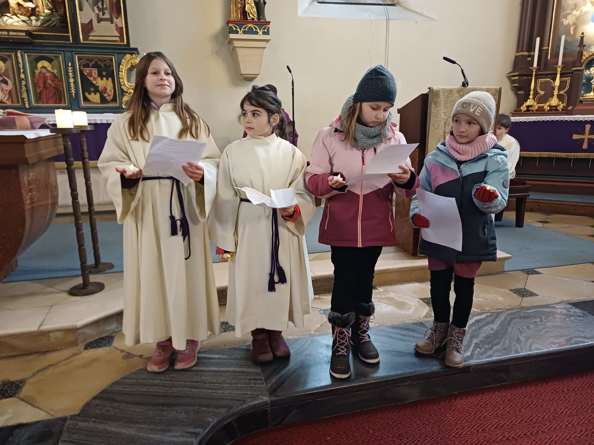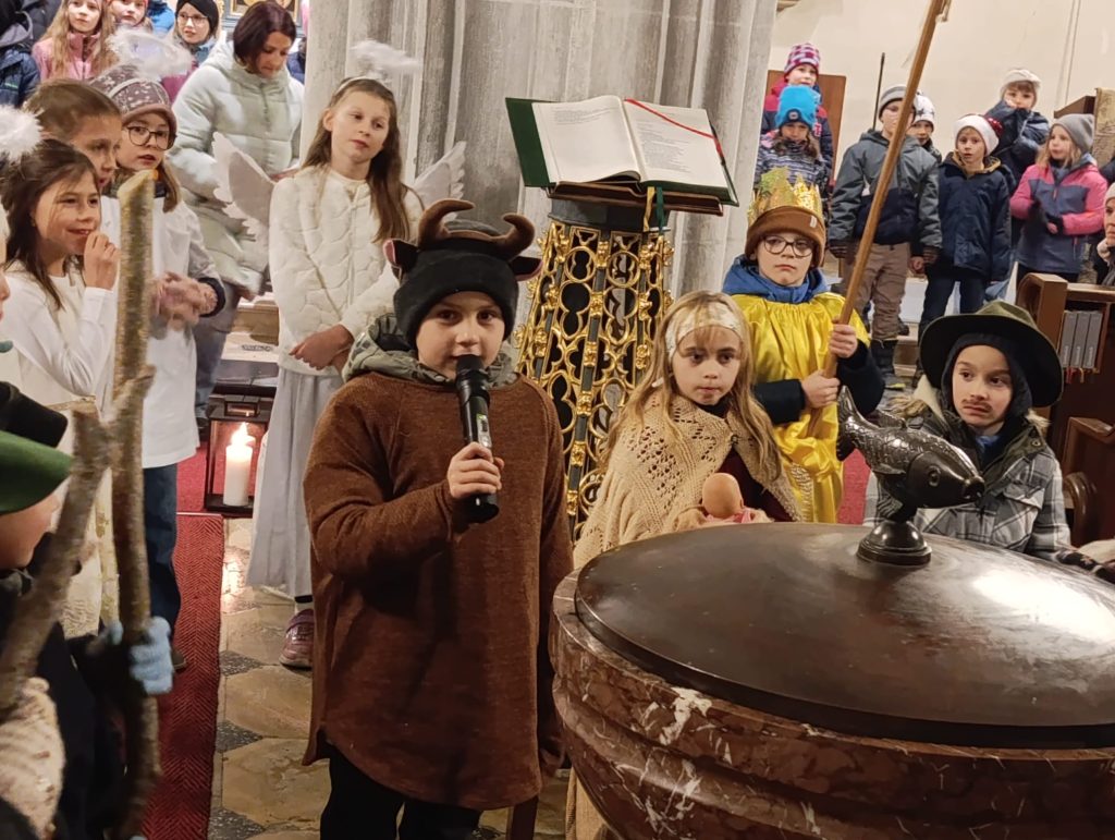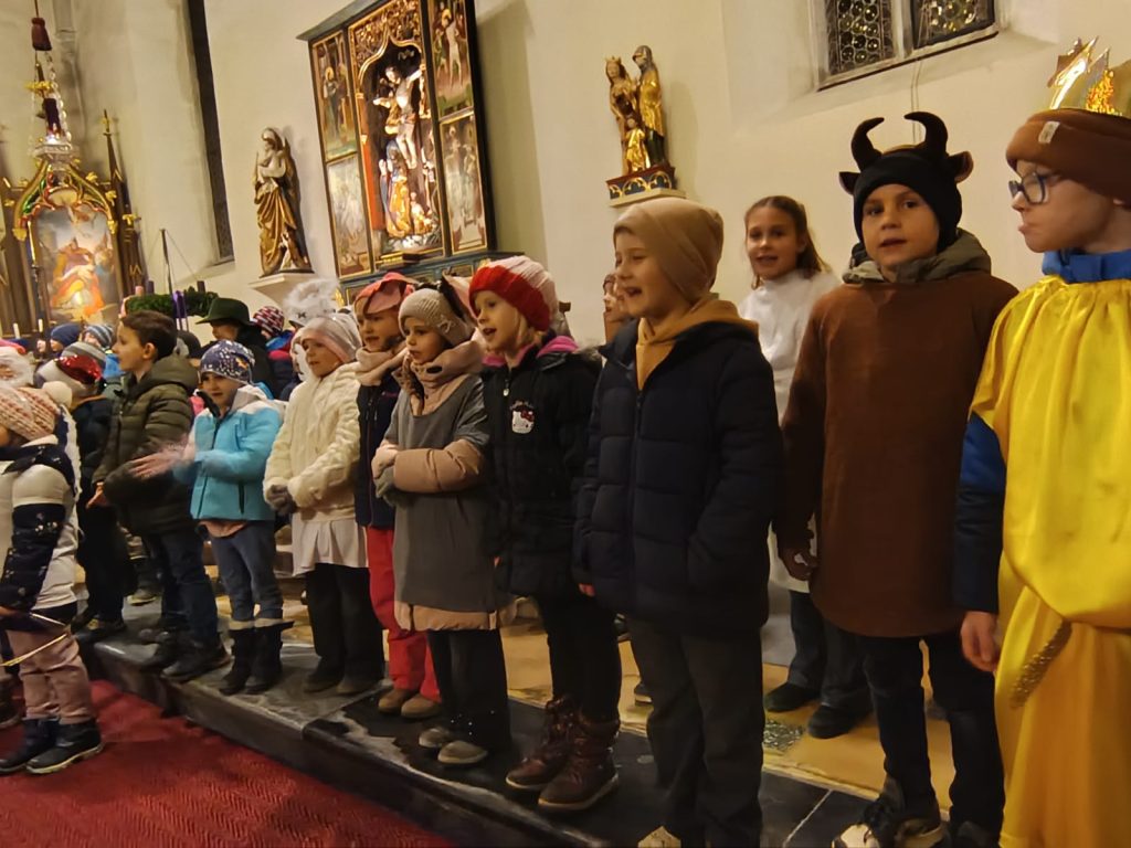 Am Montag vor Weihnachten feierten wir mit Pfarrer Oliver eine vorweihnachtliche Messe. Unsere Religionslehrerin Frau Nödl gestaltete die Feier mit den Kindern mit.