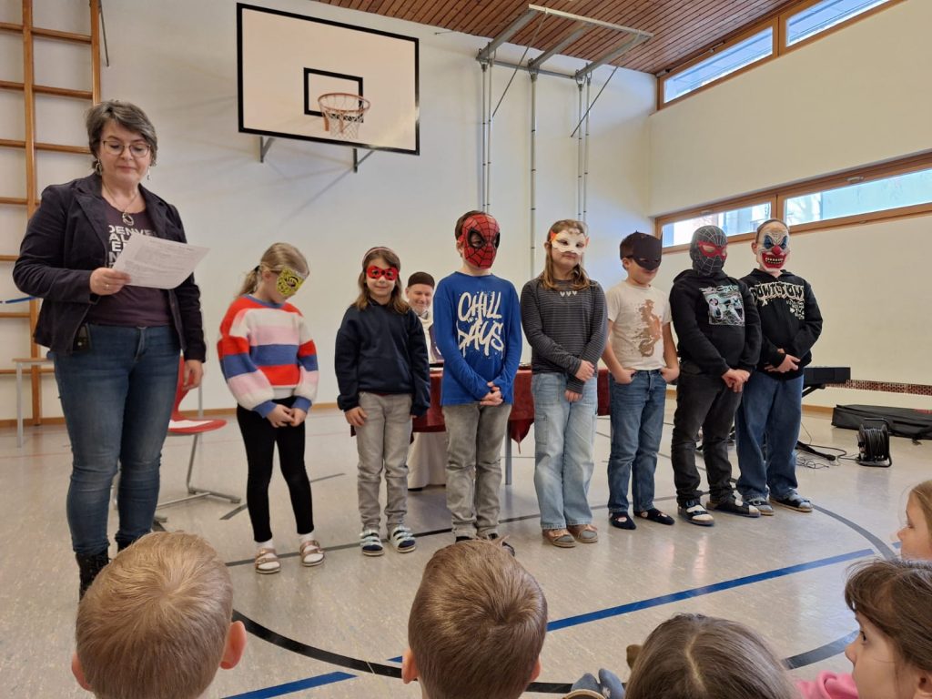 Zu Halloween überlegte sich Frau Lehrer Kernstock einen Gruselturnparcours, bei dem die Kinder turnen, Rätsel lösen und das Klassenmaskottchen befreien mussten.