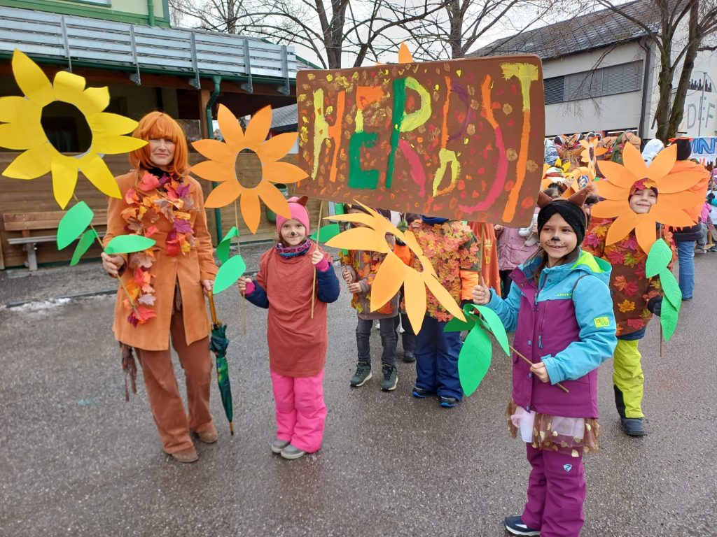 Die Kinder verkleideten sich zu den 4 Jahreszeiten: Frühling, Sommer, Herbst und Winter.